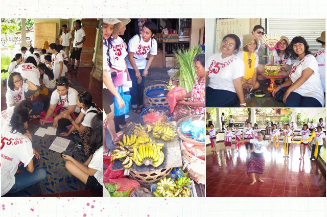 Kami kemudian diharuskan ke pasar untuk membeli bahan-bahan buat gebogan sesajen ala Bali seperti buah dan bunga. Tantangan di sini adalah sebisa mungkin kita tidak membeli menggunakan uang melainkan barter dengan shampoo yang diberikan. Gesture ini ditujukan agar kita semua bisa berbagi rahasia kecantikan pada sekitar seperti pada filsafat Tri Hita Kirana yang artinya untuk mempercayai kita begitu berharga, diperlukan keseimbangan hubungan antara yang diatas, kebahagian yang dibagi dengan sesama, perlakukan yang baik terhadap alam. Ujar Monika, Marketing Manager dari L'oreal.
