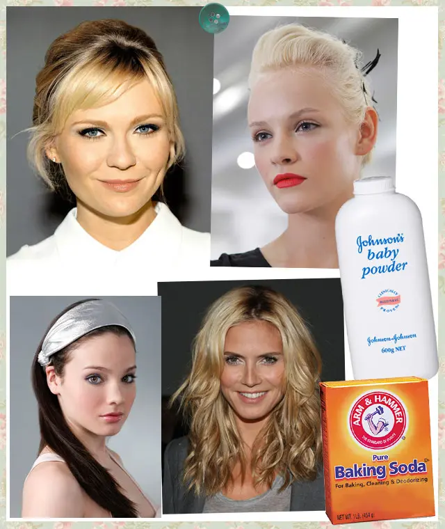 Baby powder atau bedak bayi ampuh serap minyak rambut. Taburkan sedikit bedak ke telapak tangan, kemudian usapkan ke rambut. Nggak cuma menyerap minyak, bedak bayi juga membuat rambut tampak berkilau. Pastikan bedak benar-benar menyerap di kulit kepala dengan cara menepuk-nepuknya lembut. Nggak mau dikira berketombe karena masih ada sisa bedak di kulit kepala dan rambutmu, kan?