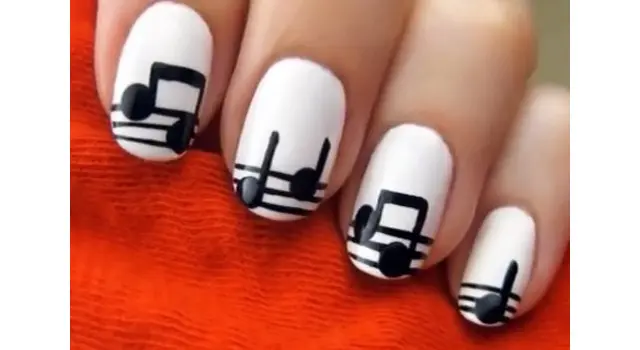 Nail art dengan pola musikal ini juga pas untuk menemanimu ke acara formal lho! Tidak perlu bermain banyak warna, cukup beri sentuhan beberapa pola not balok lengkap dengan tangga nadanya. Wonderful!