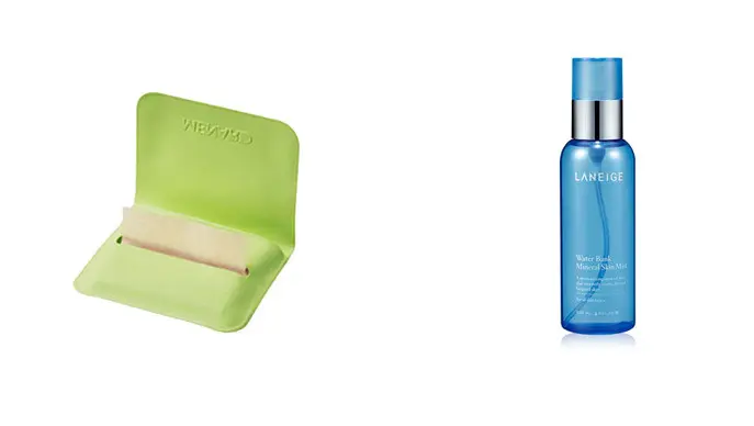 Tidak perlu repot saat kulit kamu mulai berkeringat dan mengilap karena produksi minyak berlebih. Andalkan pertolongan pertama pada blotting paper agar penampilanmu kembali prima. Selain itu, beri kesegaran tambahan pada wajah Anda dengan menyemprotkan facial mist. Kamu bisa coba Menard Blotting Paper dan Laneige Water Bank Mineral Skin Mist.