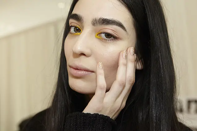 Ingin membuat kesan wajah yang terlihat fresh dengan cara instan? Selain mengandakan eyeliner kami mempunyai trik lain yang nggak kalah menarik untuk dicoba. Trik makeup dari perhelatan fashion “Delpozo” ini bisa kamu tiru, Fimelova. Gunakan eyeshadow warna cerah, seperti kuning yang terlihat di gambar, hanya dibagian sudut mata dalam. Untuk membuat mata terlihat lebih dramatis, kamu bisa menambahkan sentuhan maskara di bulu mata.