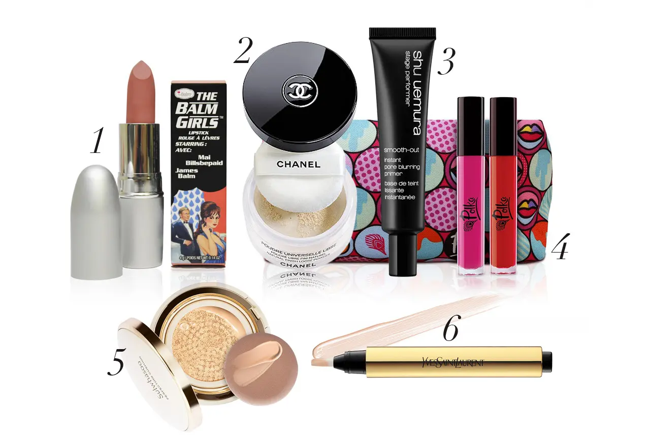 1. The Balm Girls Lipstick - Mai Billsbepaid, 2. CHANEL POUDRE UNIVERSELLE LIBRE, 3. Shuuemura, stage performer smooth-out, 4. POLKA, Mateness Lip Lacquer Set, 5. Sulwhasoo, Perfecting Cushion, 6. Yves Saint Laurent, TOUCHE ÉCLAT - Radiant Touch