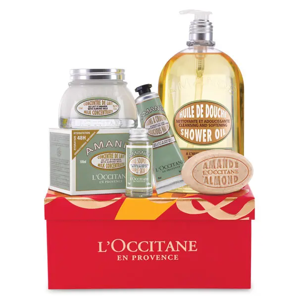Delicious Almond Gift, by L'Occitane; Walaupun momennya liburan, perawatan tubuh itu tetap penting. Jangan sampai sel kulit mati menumpuk di lapisan kulit luarmu. Rawat kulit dengan perlengkapan mandi dan sesudahnya, dari sabun, skin oil untuk menjaga kelembaban, lotion, sampai hand cream.