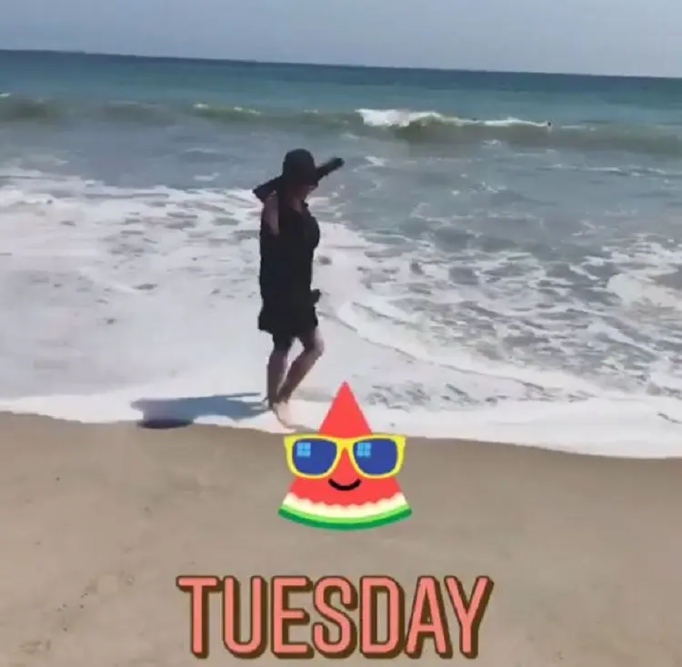 Dalam video tersebut, mengenakan baju hitam selutut dipadu dengan topi serta kacamata hitam, pemilik jargon Cetar Membahana itu, sedang bermain di bibir pantai dengan telanjang kaki sambil menenteng sandalnya.