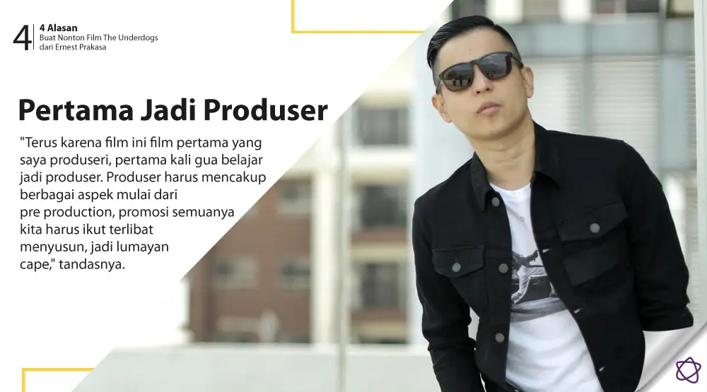 Ditemui saat datang berkunjung ke kantor Bintang.com di kawasan Gondangdia, Jakarta Pusat, Ernest mengungkapkan beberapa alasan kenapa The Underdogs layak menjadi film yang wajib ditonton penikmat film tanah air. Salah satunya adalah keberadaan rapper Young Lex.
