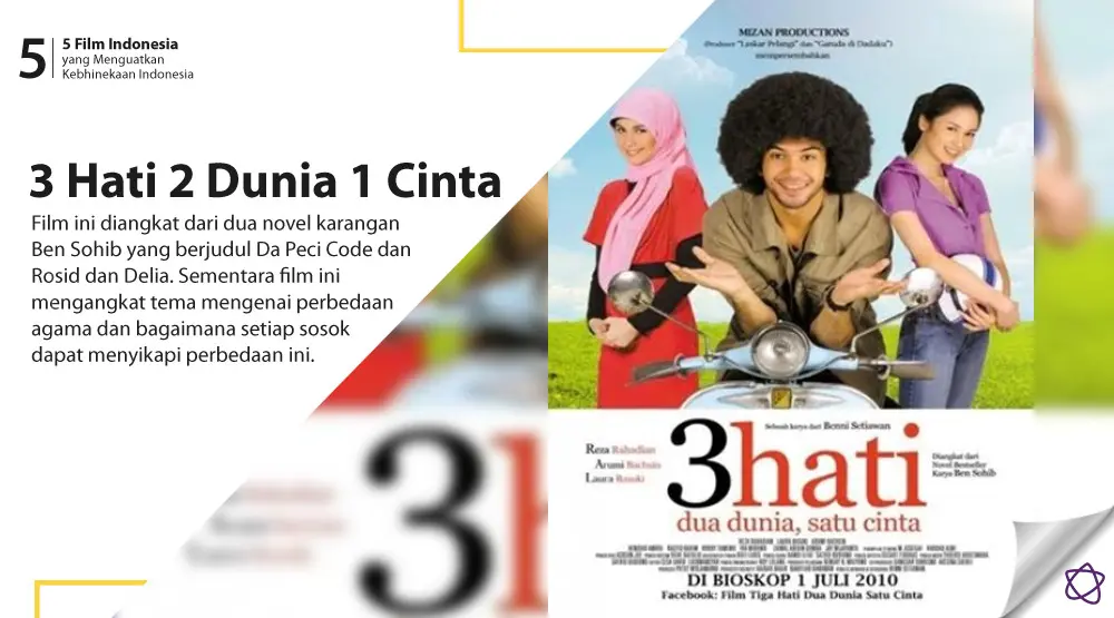 Karena sudah menjadi darah daging dalam hidup bermasyarakat, Bhineka Tunggal Ika juga menjadi insiprasi sineas dalam membuat film. Berikut 5 film Indonesia yang menguatkan Kebhinekaan Indonesia.