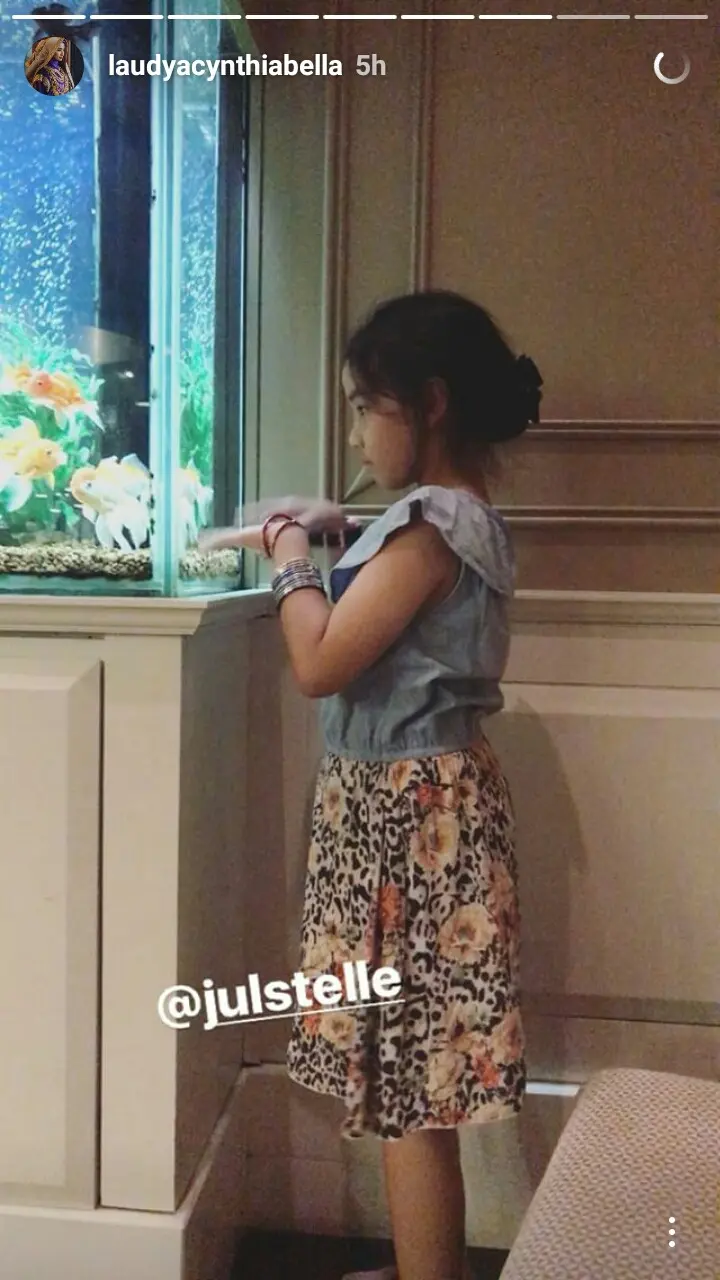 Tak hanya menemani Aleesya sedang membaca buku, dalam bagian lain, Laudya Cynthia Bella juga memperlihatkan saat Aleesya sedang memandangi ikan dalam akuarium. Kebahagiaan Bella makin bertambah karena kehadiran sahabatnya Julie Estelle.