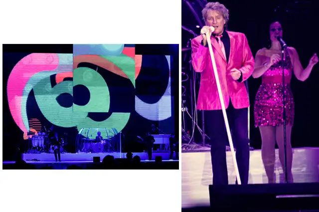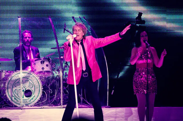 Ini bukan sekedar konser musik biasa, yang datang saja sampai perlu menggunakan jasa pesawat helikopter. Acara konser yang tepat dimulai pada pukul 8 langsung digebrak oleh lagu upbeat dari single "Love Train". Rod Stewart yang mengenakan jas dan dasi warna fuchsia tetap tampil enerjik meskipun sesekali dia menyeka hidungnya dikarenakan oleh penyakit sinusnya dan juga gedung konser yang menurutnya memiliki “the most generous AC for a concert hall”. Tanpa banyak basa basi dia langsung "menyerbu" para tamu yang hadir dengan hits-nya Love Train, Tonight’s The Night, Having a Party, It's Heartache, Some Guy, First Cut is The Deepest, I Don’t Want to Talk About It, Baby Jane, dan Down Town Train.Meskipun gaya panggung Rod yang maksimal antusias para pengunjung masih terlihat “malu-malu”.