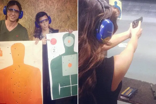 Kim Kardashian sibuk menekuni hobi barunya setelah ada orang asing masuk ke rumahnya awal tahun lalu. Tak ingin keamanannya terancam, Kim pun berlatih menembak di Florida dan memamerkan aktivitasnya itu Lewat Twitter. Intruders beware, tulis Kim memberi keterangan di foto yang ia unggah. Dalam fotonya, Kim terlihat tengah menembak, ia pun tak ketinggalan memajang kertas hasil tembakannya bersama sang sahabat, Jonathan Cheban.