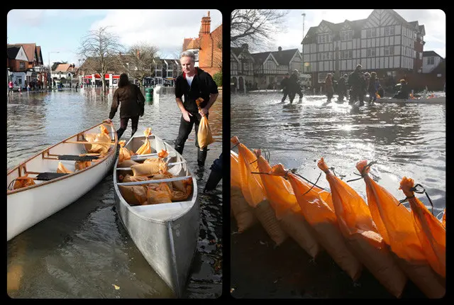 Dalam proses evakuasi, sebagian warga ada yang menolak untuk tinggalkan rumah mereka dan memilih untuk membentengi rumah dengan karung-karung berisi pasir. Di sebagian kawasan, Pemerintah Inggris membagikan karung tersebut dengan gratis. Namun, sayangnya di Surrey bencana ini dimanfaatkan sebagian orang. Oknum tersebut menjual satu karung seharga 10-50 Poundsterling atau sekitar Rp200 ribu-1 juta.