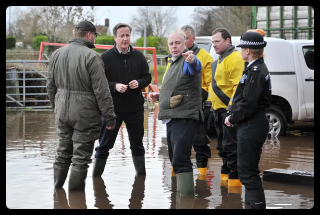 Aksi Pemerintah InggrisBanjir yang menimpa Inggris kali ini cukup bikin pemerintah kebakaran jenggot. Warga menganggap pemerintah lambat menangani situasi ini. Warga menekan Prime Minister Inggris, David Cameron, untuk meminta bantuan dari luar negeri. Sekitar 143 Ribu orang Inggris telah menandatangani petisi tersebut.