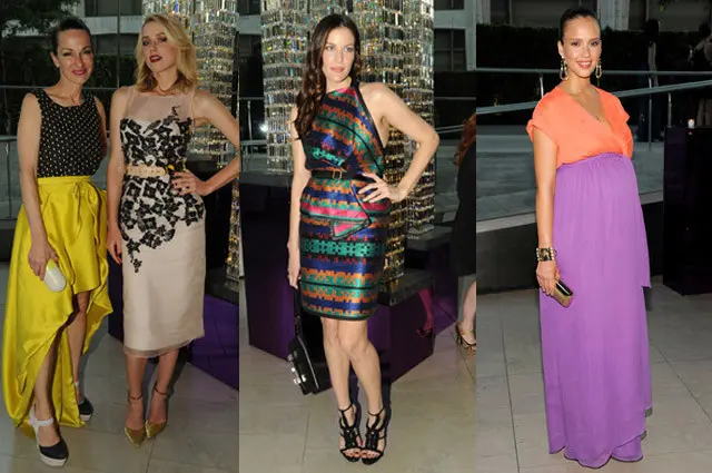 Berlawanan terkadang justru dapat memberikan esensi lain dari tampilan, fresh, unik dan yang pasti jauh dari kata biasa. Cynthia Rowley memilih atasan polkadot warna gelap dengan mullet dress warna kuning rancangannya, Jessica Alba mengenakan gaun custom made Diane von Furstenberg dengan tabrak warna ungu dan peach, dan Liv Tyler mengenakan halter neck dress rancangan Proenza Schouler dengan motif garis warna warni.