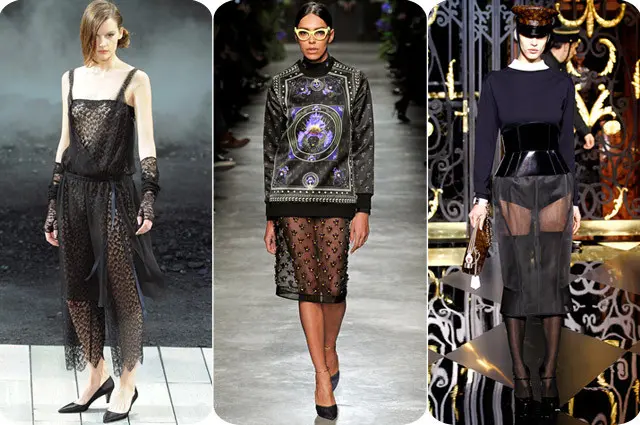Tren ini pertama kali terlihat pada runway F/W 2011 untuk Givenchy, Chanel dan Louis Vuttion. Benang merah dari tren ini adalah rok transparan yang memiliki potongan yang cukup konservatif seperti potongan lurus. Untuk mengurangi kesan “nakal”, ketiga brand ini memilih paduan atasan long sleeve dengan siluet yang tidak terlalu pas badan sehingga mengimbangi kesan sensual yang didapat dari rok tembus pandang.
