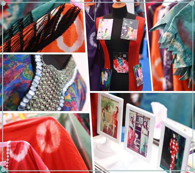 Hot Items: Koleksi terbarunya yang terinspirasi dari kultur orang Dayak adalah favorit kami. Selain perpaduan warna neon yang eklektik, ia sendiri menggambar motif etnik Dayak di atas bahan acrylic.