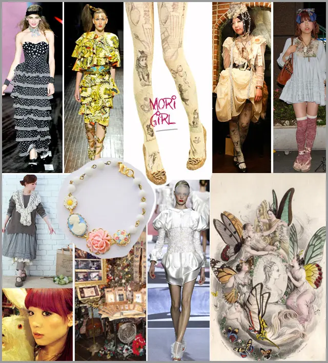 'Mori' berarti hutan dalam bahasa Jepang dan mori girl berarti gadis yang terlihat seperti peri di hutan. Gaya berpakaian mereka terinspirasi oleh dongeng dan paduan vintage kehidupan orang-orang Eropa.