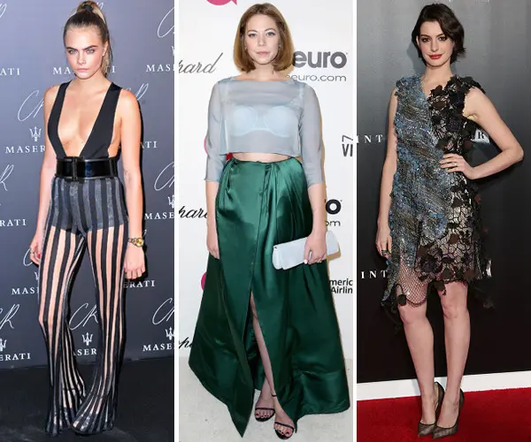 Rihanna dalam gaun mengkilap transparant by Adam Selman, memamerkan bentuk tubuhnya dan hanya dibalut dengan syal berbulu. What do you think about her dress, Fimelova? Paula Patton tampil dengan sangat “wow” dalam balutan gaun bunga mekar bewarna putih panjang karya Stephane Rolland. What happened to Sandra Lee? Ia terlihat seperti memakai gaun pernikahan bewarna silver karya Dara Lamb. Oh no! Analeigh Tipton bahkan hanya menggenakan top and bottom yang sangat santai buatan Ulyana Sergeenka. Dan Lena Dunham dengan rok pink tutu panjang yang dipadu padankan dengan kemeja pink karya Giambattista Valli, it doesn’t look good on her.