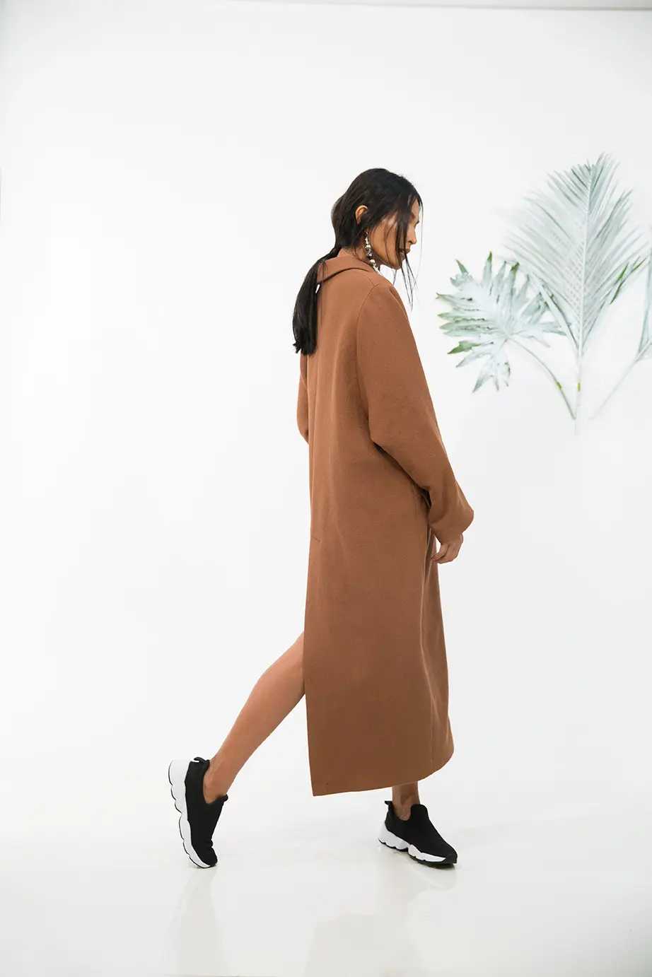 Camel Coat, H&M | Black Pants, ETU | Two-toned Sneakers, H&M | Earrings, TOTON