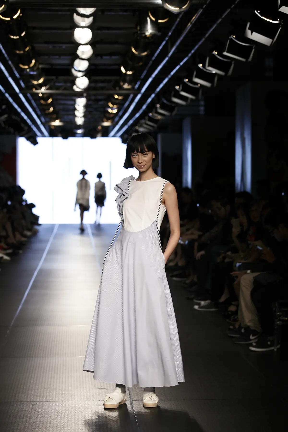 Sejak look pertama, Raiki Pasya bermain dengan aksen frill, beberapa bahkan bermain dengan potongan tumpuk. Tak ada look yang terlalu biasa. Satu item dari koleksi ini bisa membuat si pemakainya terlihat unik tanpa memakai aksesori berlebihan. Ini semua berkat detil yang sudah ‘bermain’ dengan material yang dipilih. Our favorite goes to rok lebar beraksen drapery di bagian depan. How about you?