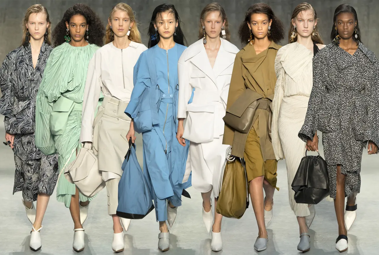 Mulai dari atasan, dress, hingga coat, Consuelo mencoba bermain dengan volume. Siluet oversized nyaris terlihat hampir di setiap look.Kemudian ia menambahkan lagi volume tersebut dengan membuat kantong besar yang dapat dijadikan pengganti tas. Dengan lugas Consuelo seolah mengisyaratkan gaya baru bagi para perempuan moderen yang ingin tampil edgy dan stand-out dengan deretan koleksinya ini.