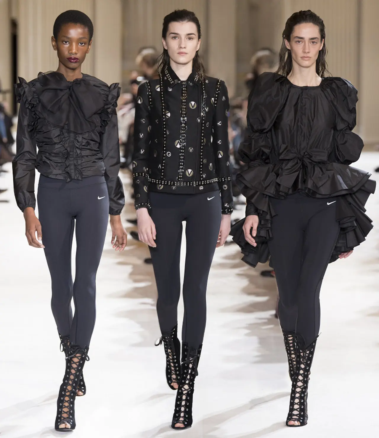 Designer asal Italia yang terkenal dengan rancangan mengagumkan yang membuat para selebriti hollywood seperti Katie Holmes, Charlize Theron, sampai Rihanna tampil menawan di red carpet ini ternyata menyelipkan legging untuk dijodohkan dengan beberapa rancangannya sebagai pendekatan terbaru untuk gaya athleisure. Sang designer merasa bahwa gaya athleisure itu sendiri bukan merupakan sebuah trend yang akan mudah berganti, namun lebih kepada sebuah lifestyle pilihan perempuan modern masa kini. Berdasarkan keterangan yang diberikan oleh pihak PR Valli “the designer wanted to illustrate a woman that just pairs her sport trousers after her training with a great jacket and stiletto boots and goes out to her Parisian life." Singkatnya, gaya perempuan Paris yang modern ya seperti yang terlihat di runway-nya.