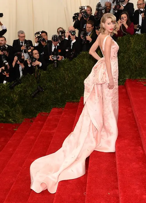 14. Met Gala 2014 (paling kanan). Taylor looks gorgeous in this gown oleh Oscar de la Renta yang dikenakan untuk Met Ball.