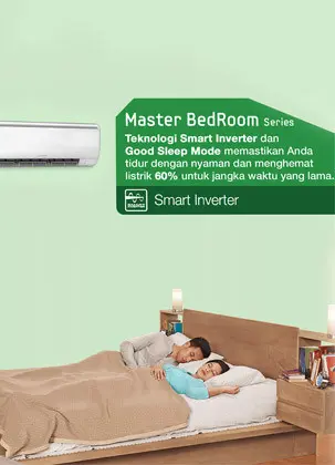Pada Master Bedroom Series, terdapat 2 teknologi andalan AC Samsung: Smart Inverter dan Good Sleep Mode. Fitur Good Sleep Mode secara otomatis menyesuaikan suhu sesuai dengan kondisi tidur, sehingga tidak perlu bangun malam untuk mematikan AC akibat kedinginan ataupun menyalakan AC akibat kepanasan, sehingga kamu bisa bangun dengan lebih segar esok hari. Hebatnya, walaupun digunakan minimal 8 jam per hari, AC Samsung seri ini justru bisa menghemat listrik hingga 60% karena menggunakan Inverter Compresor, yang secara smart mengoperasikan AC sesuai kebutuhan. Selain hemat listrik, bisa sekaligus mengurangi efek pemanasan global, kan!