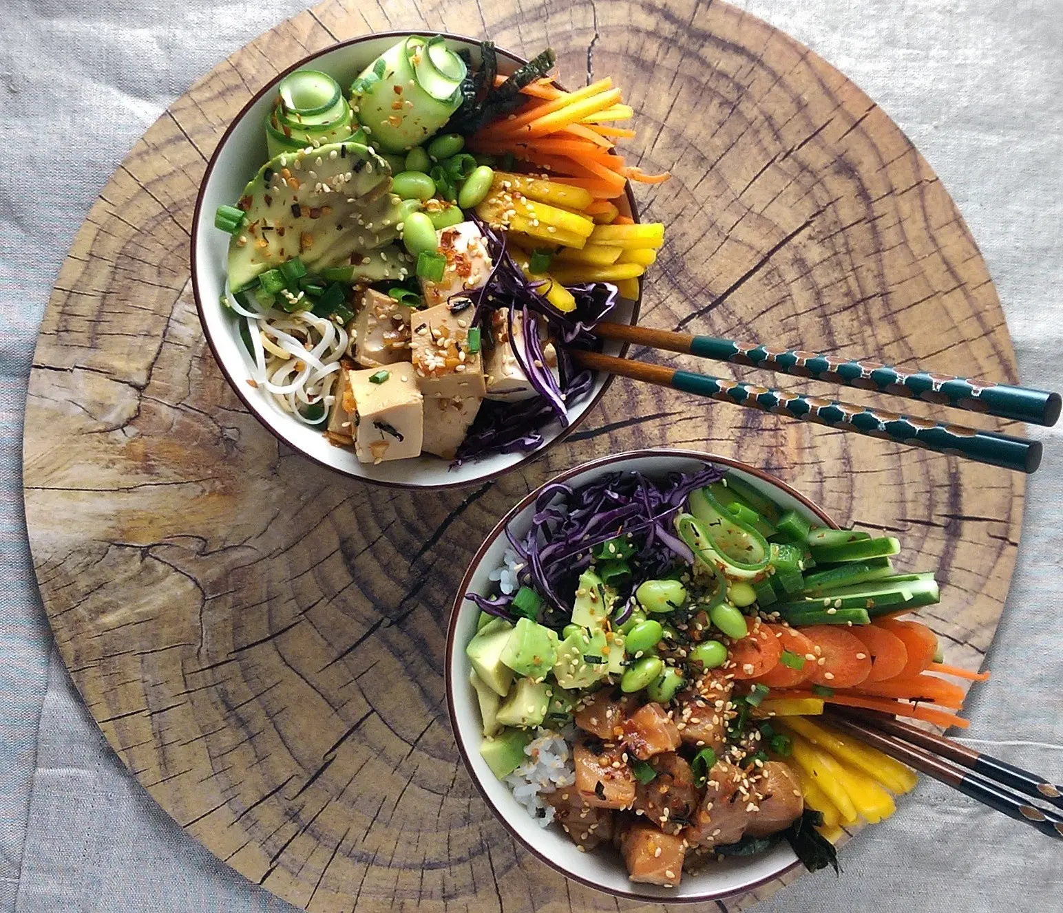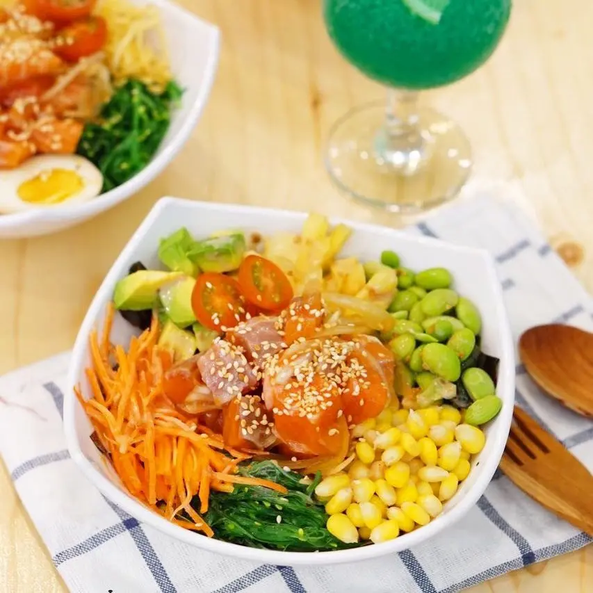 Menu Poké Bowl yang dihadirkan disini mungkin sedikit agak berbeda dengan kebanyakan. Sashimi yang disajikan bisa dimatangkan sesuai selera. Satu yang unik, pada menu Siam Bowl, selain sayuran segar seperti tomat cherry, selada, edamame, dan grilled salmon, juga hadir potongan keripik tempe yang renyah. Jika ingin Poké Bowl yang berupa salad murni yang ikannya dimatangkan atau mau mengganti nasi dengan mie soba, mungkin Farmers Bowl bisa jadi pilihan.